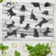 Cat Silhouette Black & White Light Grey Wispy Tea Towel