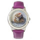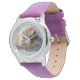 The watch looks exactly as depicted. I was especially pleased with the watch band, which is a nice quality, supple leather. I point this out because an option, which was sold out, was with a multi-colored but clearly plastic band. This is the better choice, in my view.