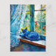 A blue-black cat sleeps on a window ledge in a peaceful, sunlit setting. Painting