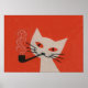 Cat Smoking a Pipe Funny Retro Vintage Poster