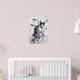 An illustration of a calico cat studying the nature and the mechanism of gravity. On a white background.
