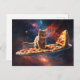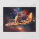 Cat surfing a pizza in the cosmos postcard
