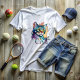 This design features the face of a beautiful cat drawn with watercolor, capturing in detail his lively features and expressions. The soft watercolor brushstrokes provide an artistic and delicate touch, enhancing the natural beauty of the feline. Complementing the design, a striking sign with the word "Cat" in large letters, also done in watercolor, adds a striking and fun element. This unique design combines art and love of cats, perfect for little feline lovers.