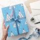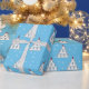 Cute illustration of cats making a tree or pyramid shape. Cats in Christmas hats and snowflakes over a blue background. Funny cats wrapping paper. Blue and white wrapping paper. Cat lover wrapping paper. Christmas wrapping paper.