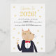 Ring in the New Year with a playful twist! This fun and whimsical gold foil invitation features an suave and sophisticated anthropomorphic golden cat dressed in a tuxedo and bow tie, holding a glass of celebratory Champagne against a gold, black, and white palette. Personalise all text to include your party details and set the tone for a celebration your guests won’t forget. Change the gold foil to silver or rose gold if you prefer. Perfect for animal lovers, cat fans, and anyone hosting a lively New Year’s Eve gathering. Original art by Nic Squirrell.