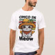 Cat wearing sombrero celebrating Cinco de mayo illustration With funny Cinco de mayo saying that says "Cinco de meow"