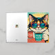 Cat wearing oversized sunglasses, holding a coffee foil greeting card