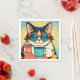 Cat wearing oversized sunglasses, holding a coffee napkin
