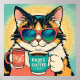 Cat wearing oversized sunglasses, holding a coffee Retro style