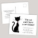 Modern fun new home / change of address moving announcement postcard featuring a cute illustration of a chic and elegant black cat with a pink collar. On the front, personalise with your name in a stylish script, the "cat and I have a new home" text and your new address. On the reverse side, personalise your announcement in more detail and include a telephone number and email if desired.