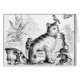 A cat looks uninterested with the birds and the rats that are surrounding it. It seems funny and must have amused people back then.