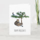 A tabby cat holds a Christmas tree full of wild birds on this "Happy Holidays" card.