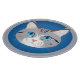 Charming illustration featuring a white-furred cat with striking blue eyes on a solid blue backdrop, showcasing delightful feline characteristics and vibrant colours.