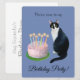 A black and white cat sits by a birthday cake with lit candles. Who could resist coming to your birthday party when you send out this sweet cat invitation.