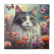 Cat with flowers and butterflies AI Cat 701 Ceramic Tile