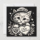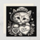 Here's a cute card with a black and white illustration of a cat with a rose and a heart (presumably a heart shaped box of chocolates or a valentine card) that says Happy Valentine's. The cat with a rose and heart card has a vintage feel. Oh and the cat is wearing an old fashioned bonnet! It's a nice card to send to someone you love, especially for Valentine's Day. A cat lover or person who likes vintage or retro illustrations.
