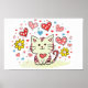 Cat with flowers and hearts poster