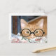 Orange tabby cat with glasses lies in bed with his books in the background waiting to be read. Great card for cat lovers, teachers, librarians. Books png purchased from Painted on my soul for use.
