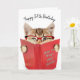 Cute tabby cat with red glasses reading a red book on white background for 37th birthday.