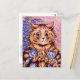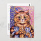 A fine art postcard featuring an animal illustration by the English artist Louis Wain (1860-1939), who is best known for his cat portraits This particular illustration showcases a surprised ginger-coloured mother cat holding three kittens, two of which are blue, set against a wallpaper background.