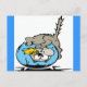 A clever cartoon between a cat and a fish. Good quality postcard with a sharp, clear image.