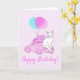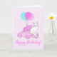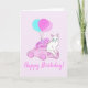 Cat with pink car and balloons card