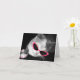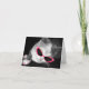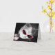 A card featuring a black and white photo of a cat with pink sunglasses & claws. Inside is blank.