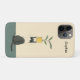 Charming minimalist illustration of a black and white cat holding up a yellow flower pot with a green plant. The soft beige background and gentle lines create a calm, cozy mood. This iPhone case is perfect for cat lovers, plant enthusiasts, and those who appreciate simple, modern art.