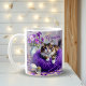 Cat with Purple Eyes in Purple Yarn and Flowers Coffee Mug