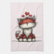 Cat with Red Love Hearts Cute and Funny Tea Towel
