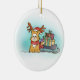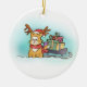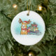 Cat with Santa Reindeer Hat delivering Presents Ceramic Ornament