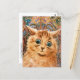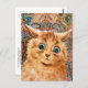 A fine art postcard with an animal illustration by the English artist Louis Wain (1860-1939). He was an illustrator best known for his drawings of animals and country scenes. An orange tabby cat against a wallpaper background.