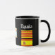 Enjoy your favourite beverage with this elegant Catalunya coffee mug. The mug has a black background. One side is the Catalunya coat of arms under the name Catalunya. On the opposite is the Catalunya flag over the Spanish flag. These two are underneath the word España. Between the two side is a map of Spain with the location of Catalunya. The mug may be customised: size, style, colour, wording, etc. Visit www.zazzle.com/azorean*, then browse the Europe section.