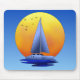 For Captains down to the deck hands, vector catamaran sailing graphic with sunset and seagulls.