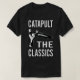 Celebrate classic rock with this unique t-shirt featuring bold typography and a vintage catapult illustration. Perfect for music enthusiasts and punk rock fans.