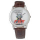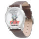 The watch looks really great! Very sharp and well done. The leather band is really nice, though for a man's watch I think it should be longer. Unfortunately, it isn't big enough for my husband's wrist but I will get a replacement because he is very excited to wear it!