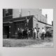 Firemen's school, 1920s. A firefighter jumping from a roof to a fireman's safety trampoline.