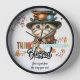 Add a touch of charm to your Thanksgiving decor with this delightful wall clock featuring a playful cat adorned with five vibrant hearts. Surrounded by a backdrop of colourful fall leaves, this clock beautifully incorporates the words 'thankful, gratitude, and blessed,' along with the uplifting message, 'You are just fine the way you are.' Perfect for cat lovers and those who cherish the spirit of the season, this clock serves not only as a functional timepiece but also as a daily reminder to embrace self-acceptance and appreciate life’s blessings. Enhance your home with this whimsical piece that captures the warmth and joy of Thanksgiving, making it a lovely addition to any room.