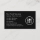 Caterer business cards template with a novel design that includes a catering symbol, straight to the point slogan, and text space you can customise including changing the text colour, background colour and layout. Designed for a professional catering service, wedding caterer, or food prep.