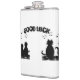 The flask itself is fine. It’s a cheap flask, obviously bought in bulk, however am prepared to overlook that. Given that it is a personalized item, I would have liked to have seen gift boxing instead of the generic packaging. Terrible printing, and/or quality. It’s a cheap, tacky vinyl. It is not cut straight and is also applied in a way that it is overhanging the bottom, causing the glue to catch on items and it will eventually roll and tear, damaging the wrap.