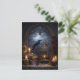 This cathedral gothic postcard features a raven perched atop an antique birdcage, illuminated by warm candlelight beneath a towering gothic arch and glowing full moon. Surrounded by vintage books, deep red roses, and dramatic shadows, this atmospheric still life captures the mystery and elegance of classic gothic architecture.
