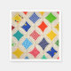 Colourful cathedral window quilt pattern with cotton muslin, calico print, and gingham.