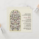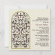 A formal design depicting an arched, stained-glass window with intricate forms. A distinct cross is centred at the top of this handsome, square invitation. It is suitable for Baptism, Christening, First Holy Communion and Confirmation celebrations or any other religious events. br/>