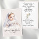 A simple and elegant keepsake card for a baby girl's baptism, featuring a sweet illustration of a little one in her baptismal gown. The illustration is fully customisable and can easily be replaced with a photo of your choice. These cards make beautiful baptism favours and heartfelt mementos for your guests.