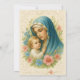 Featuring a beautiful custom designed Baptism Christening invitation with a vintage religious image of the Blessed Mother and the Baby Jesus accented with pink and blue floral design.