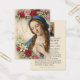 Remember your loved ones in prayer with this beautiful traditional Catholic religious image of the Blessed Mother Mary with roses, lilies and the Holy Rosary.