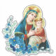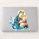 This beautiful contour sticker features a traditional Catholic image of the Blessed Virgin Mary with the Baby Jesus with blue flowers.