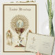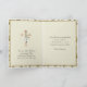 This is a beautiful traditional Easter Greeting for a Catholic Priest with the Resurrection of Jesus from the tomb inside of the Eucharist which is above the gold chalice. Angels are in adoration on each side. The inside includes a cross, lily, and verse which may be modified.