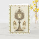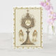 Featuring a custom designed traditional Catholic religious image of the Holy Monstrance with the Eucharist and two vintage angels on each side. A lovely white lily border accents the frame.