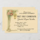 Beautiful Traditional First Holy Communion Invitation. with chalice, host, and pink roses. All Text, Fonts, and Images can be modified.